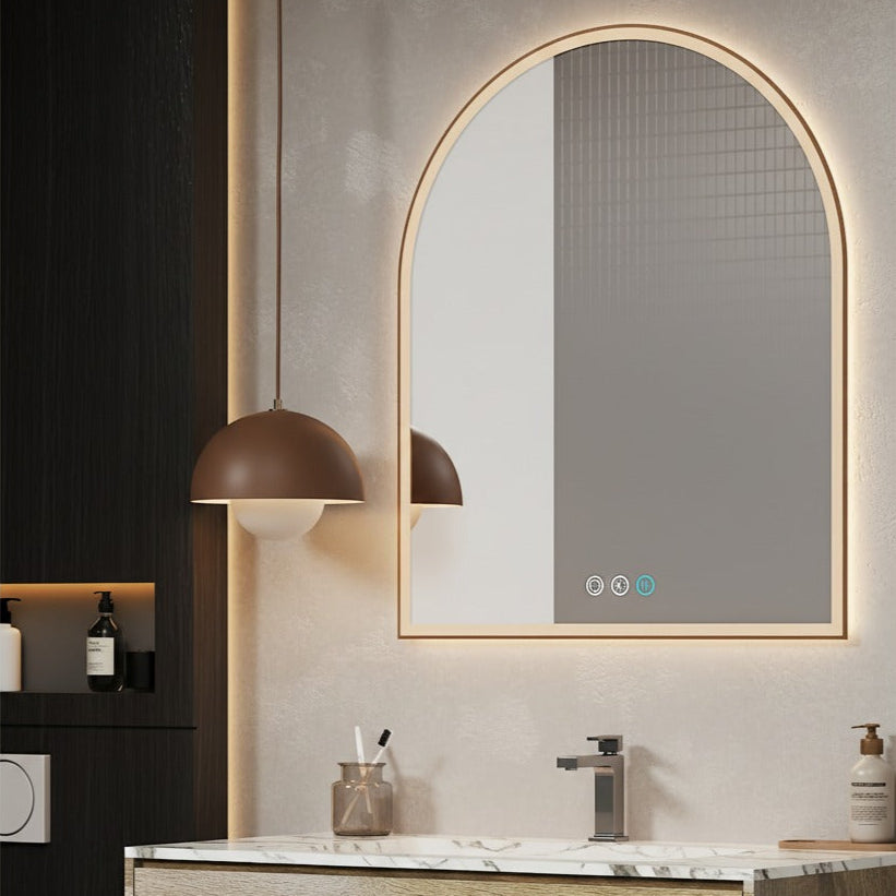 20", 24", 30" Arched LED Mirror with Gold Metal Frame