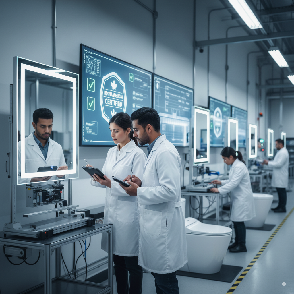 Every LED mirror and toilet is certified to North American standards, built for safety and effortless inspection approval.