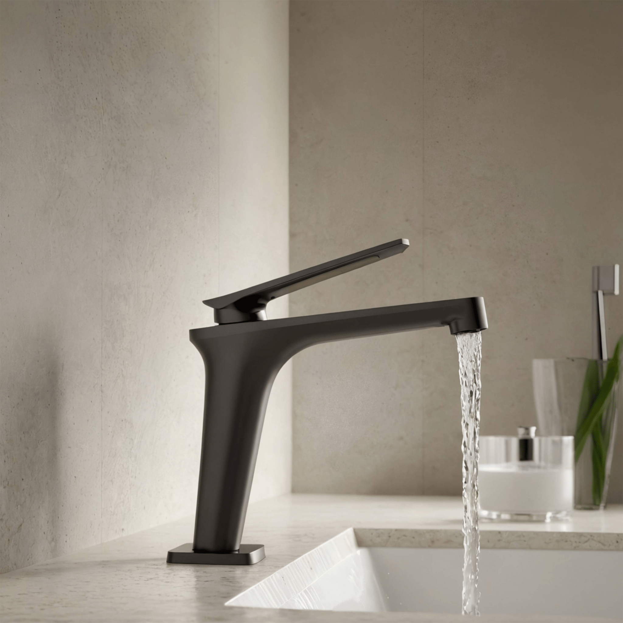 A perfect choice for master bathrooms, offering a modern design with balanced counter space and storage.