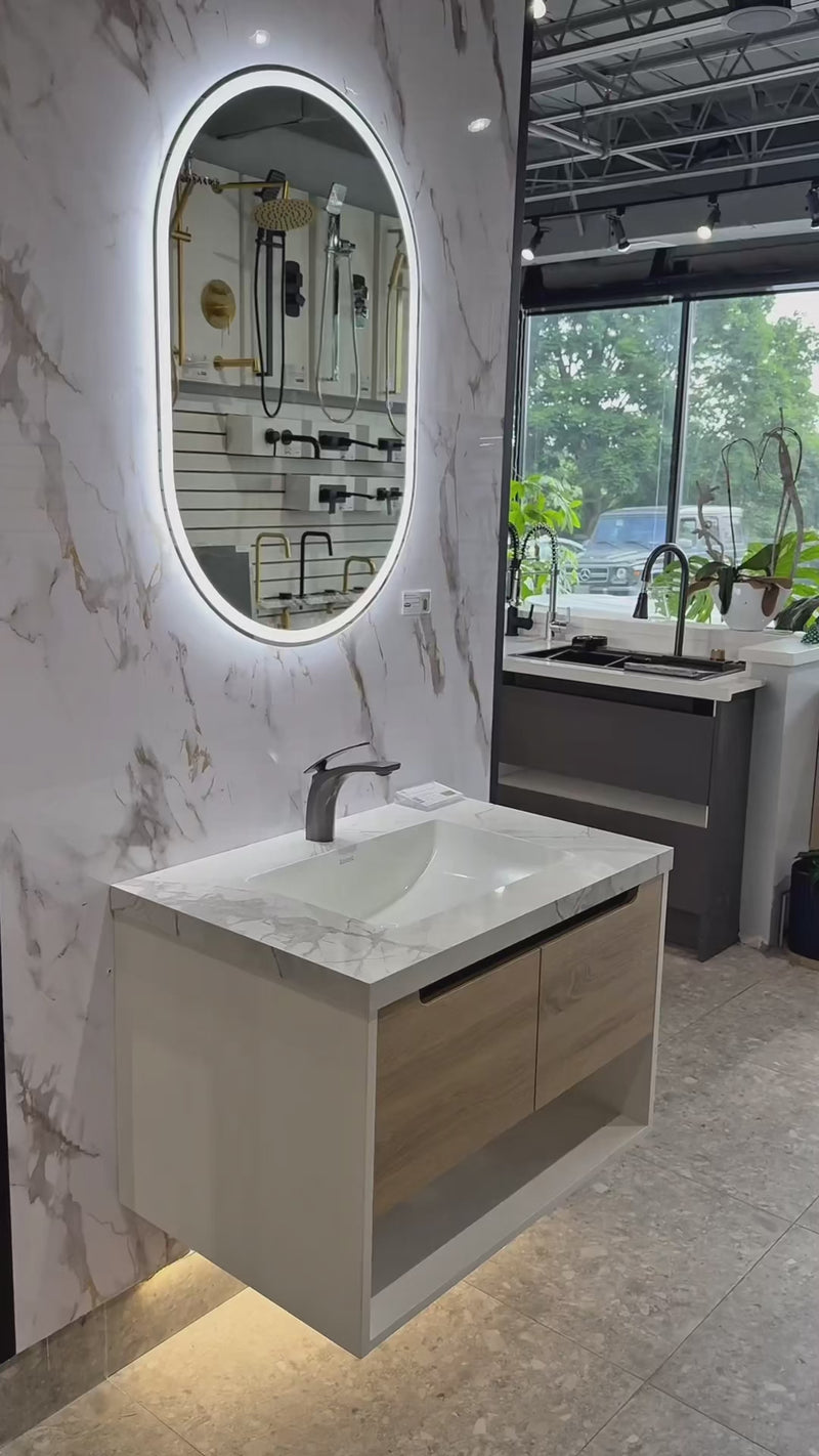 Upgrade your bathroom in ultra-modern style with this open shelf, and two drawers floating vanity. Crafted from Sintered stone, and plywood cabinet. This vanity defies gravity with one wall-mounted pieces designed to align, We love that its wall-mounted design frees up your floor and visually enlarges your space. Plus, it comes with a seamless sink and a pre-drilled hole for a faucet of your choice (sold separately).