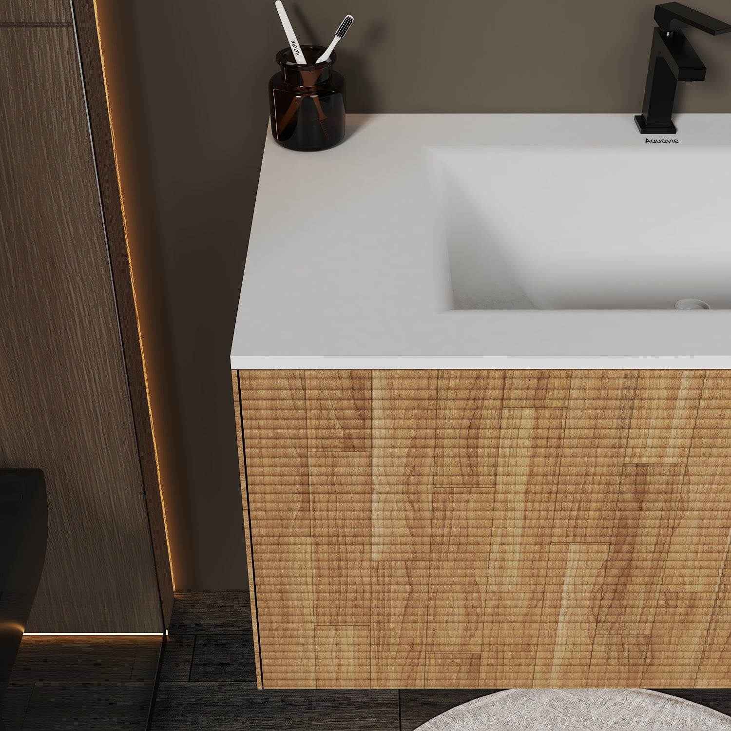 Linea Floating Vanity – Seamless Curved Stone Top, 32" / 36" / 40"
