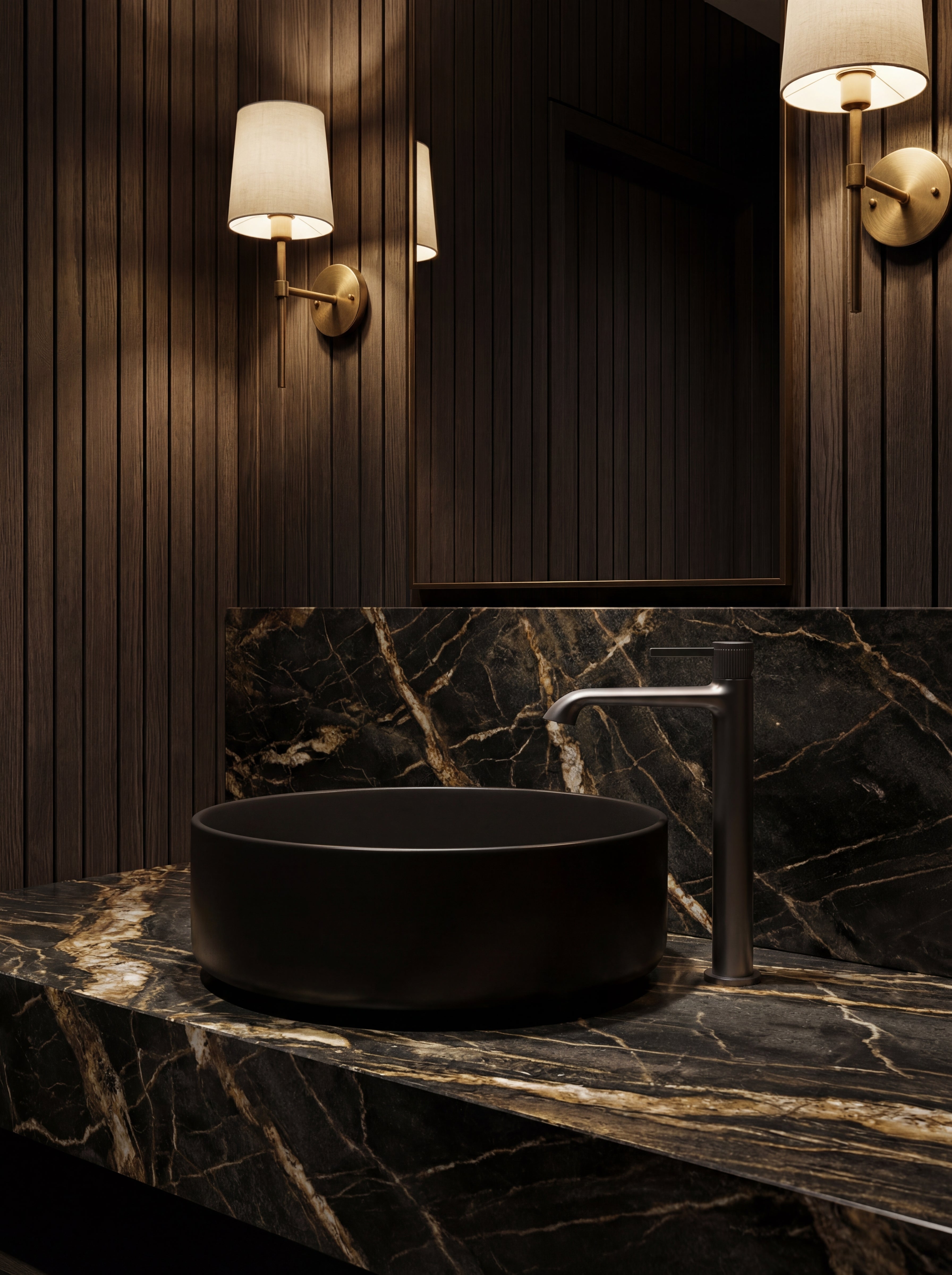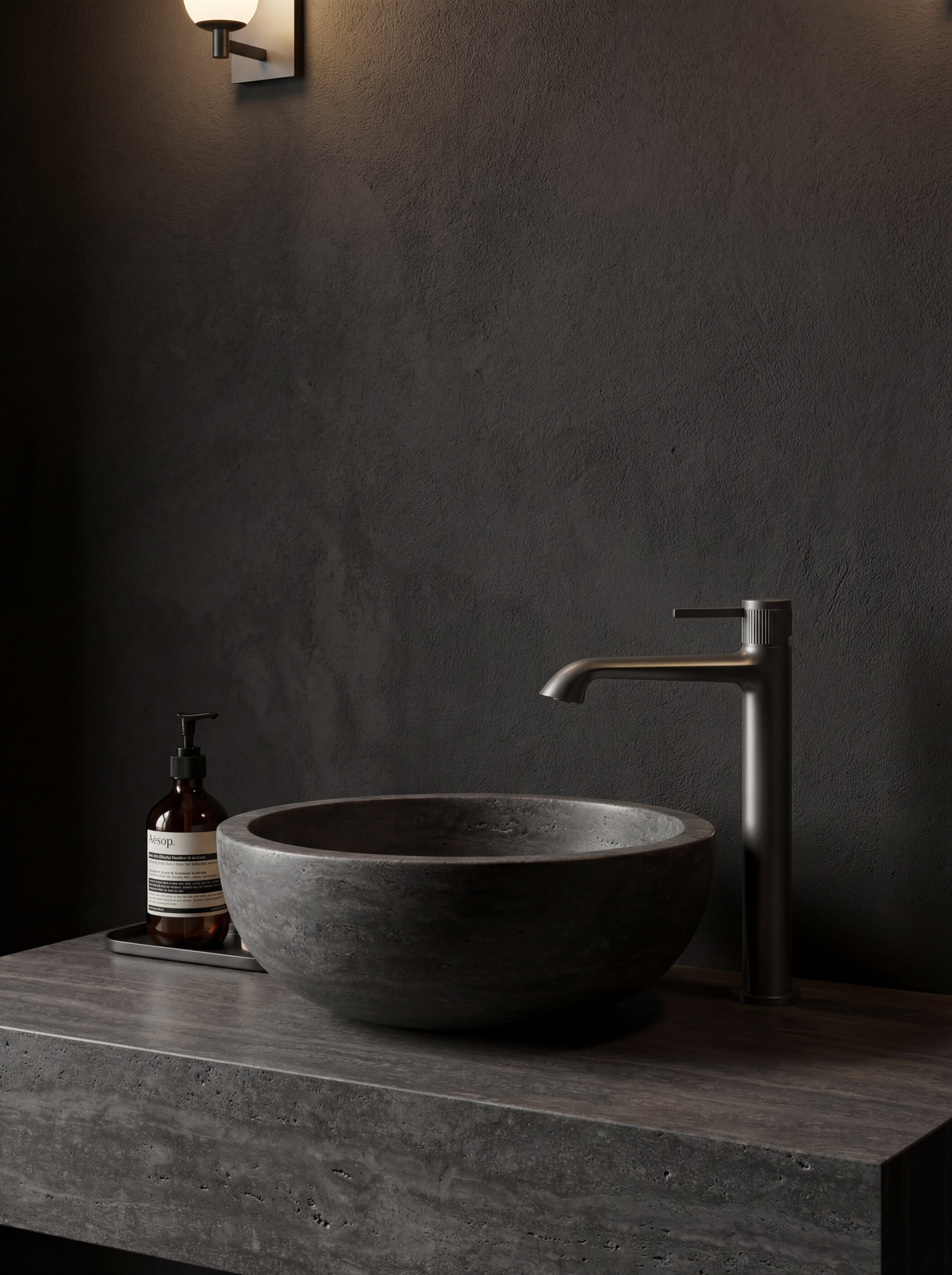 Rise above the ordinary. The AURA tall vessel faucet merges the organic fluidity of a sweeping arc with the commanding tactile presence of a precision-ribbed dial. Designed to tower gracefully over freestanding basins, it brings an unmistakable architectural authority to your moody, private sanctuary.